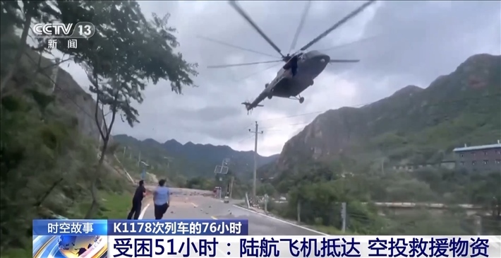 8月1日下午4:00,K1178次列車被困51小時(shí)后,某陸航旅4架滿載應(yīng)急物資的飛機(jī),克服不利氣象因素,在北京門頭溝地區(qū)執(zhí)行空投任務(wù),并為K1178次列車空投救援物資。然而,由于沿河城站位于山谷中,地形狹長(zhǎng),周邊環(huán)境復(fù)雜,再加上氣象條件不好,空投一開始并不順利。