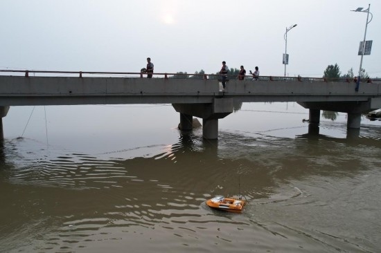 海委水文局水文應(yīng)急監(jiān)測小分隊在大清河上測流作業(yè)。新華社記者 劉詩平 攝