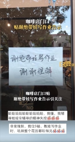 ·天津一咖啡店謝絕家長帶娃寫作業(yè):寫作業(yè)易引起家長和孩子情緒波動(dòng)。