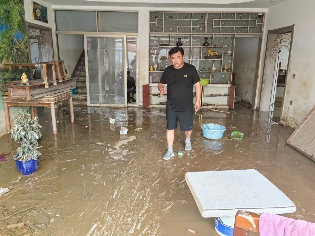 望海莊村艷天綜合商店門前,村民楊立新和趕來幫忙的親戚朋友正在一起整理受損貨品,這個村里最大的超市此次受災較重?!皳p失不少,但我們不能光等著,先把能搶救的搶救出來,能收拾的都收拾干凈,盡己所能先恢復?!睏盍⑿抡f。