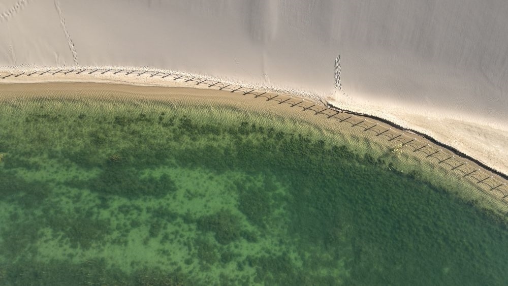20多年來,月牙泉及其周邊實行嚴(yán)格的水資源管理。為維系沙泉共生的微妙平衡,泉水南北兩側(cè)的沙山被封禁,人們漫步在月牙泉周邊時,需要套上鞋套。