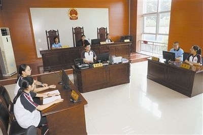 “現(xiàn)在開庭……”隨著審判員敲響法槌,庭審拉開帷幕,學(xué)生們在旁聽席上“零距離”感受庭審,對庭審流程及程序有了直觀的了解。