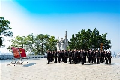 “我志愿加入中國共產(chǎn)黨,擁護(hù)黨的綱領(lǐng),遵守黨的章程……”今年7月,百色市中級人民法院黨員到百色起義革命烈士紀(jì)念碑廣場開展黨日活動,緬懷革命先烈,重溫入黨誓詞。鏗鏘的誓詞,久久回蕩在紀(jì)念碑上空,銘刻在每一個人的心頭。