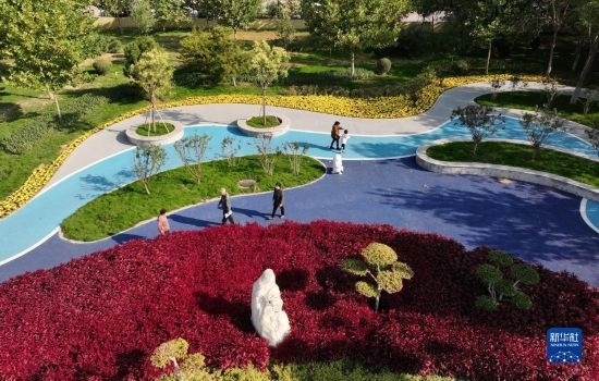 10月15日,市民在唐山市海港經(jīng)濟(jì)開發(fā)區(qū)一處街角公園休閑鍛煉(無(wú)人機(jī)照片)。