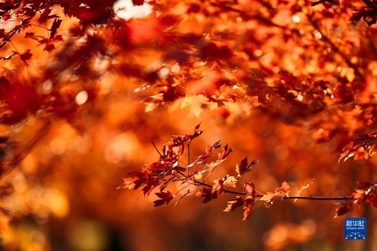 這是10月19日在長春市百木園內(nèi)拍攝的紅葉。