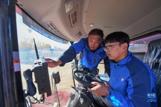 10月19日,在中國科學(xué)院“黑土糧倉”科技會戰(zhàn)長春示范區(qū)公主嶺示范基地,中國科學(xué)院東北地理與農(nóng)業(yè)生態(tài)研究所高級工程師陳國雙(左)與團(tuán)隊(duì)成員調(diào)試無人駕駛農(nóng)機(jī)。