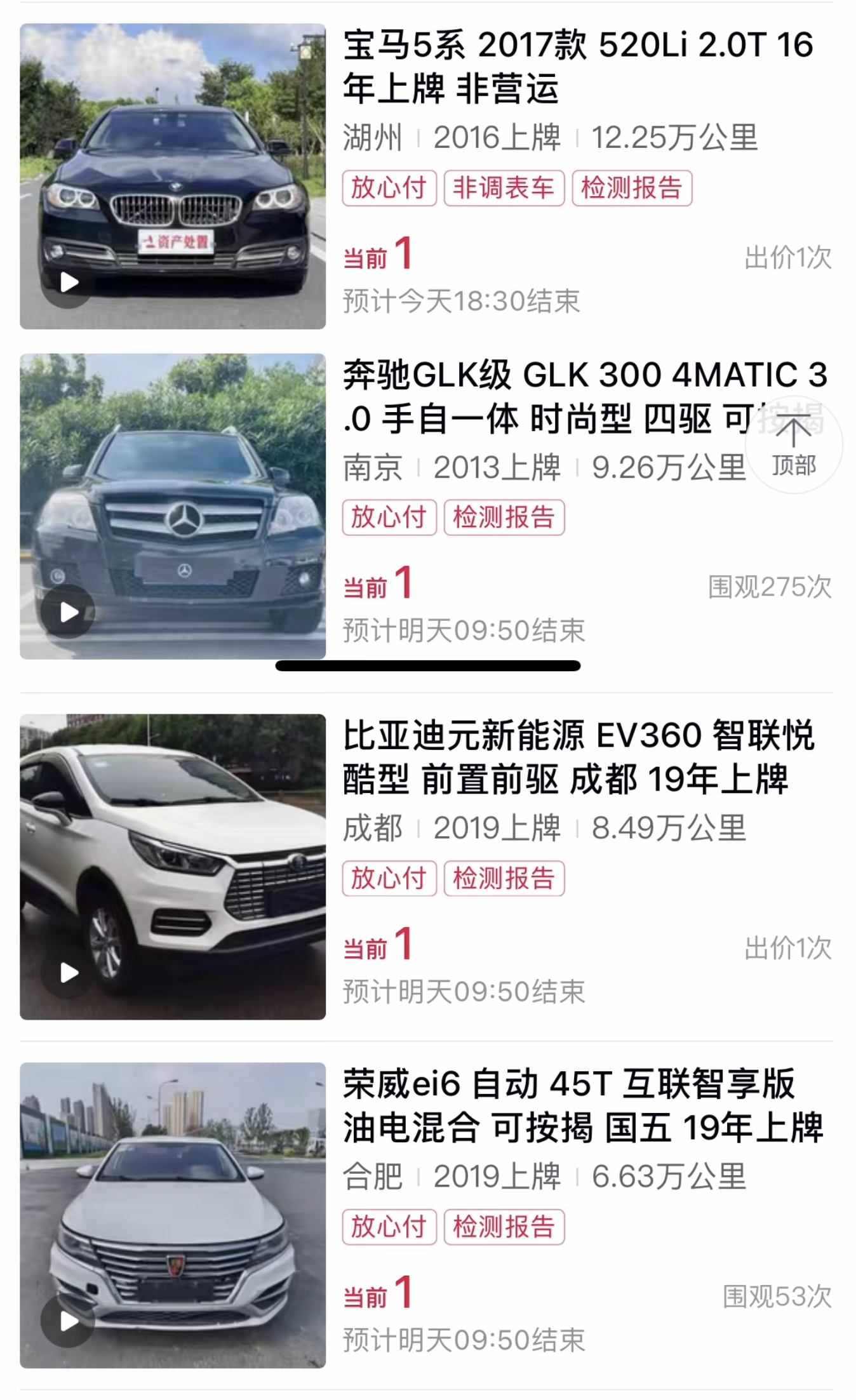 豪車1元起拍不鮮見