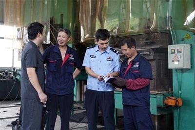 圖②:三門法院執(zhí)行干警實地走訪涉執(zhí)企業(yè)。