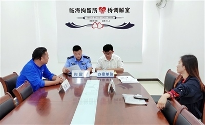 圖④:臨海法院執(zhí)行法官與拘留所民警共同開展調(diào)解,促成雙方當事人達成執(zhí)行和解。