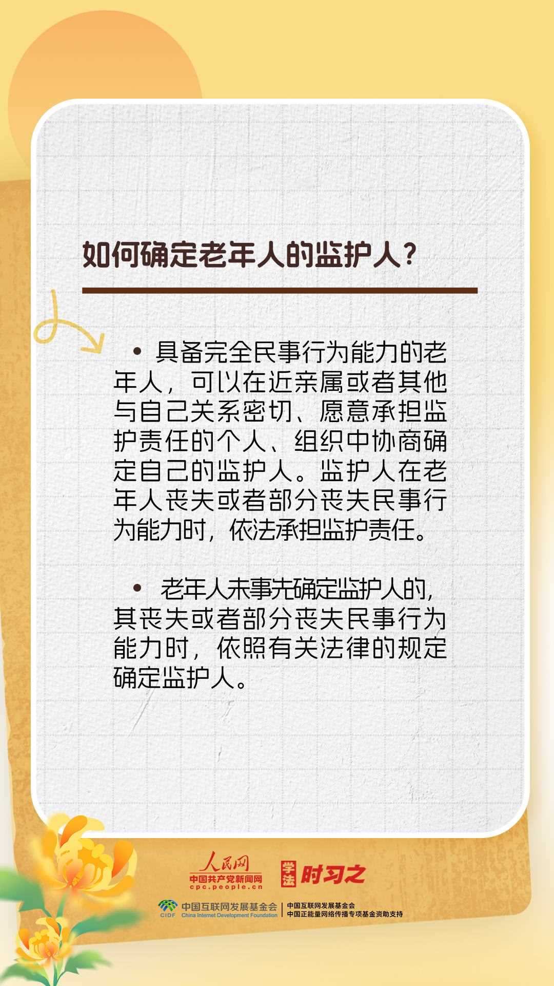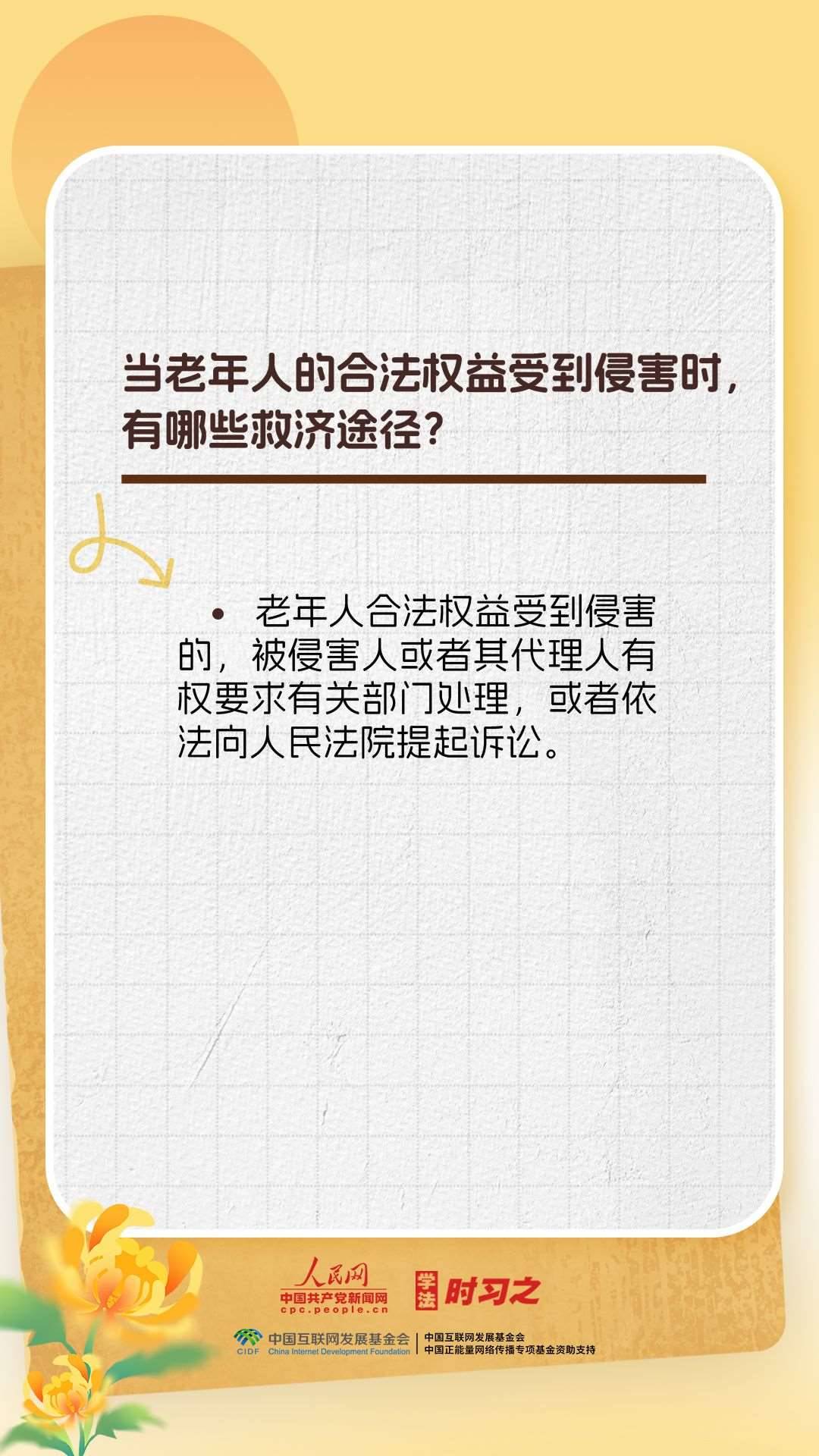 《中華人民共和國(guó)老年人權(quán)益保障法》的出臺(tái)進(jìn)一步保障了老年人的合法權(quán)益,弘揚(yáng)了中華民族敬老、養(yǎng)老、助老的美德。重陽(yáng)節(jié),一起來(lái)了解老年人權(quán)益保障法的相關(guān)規(guī)定。