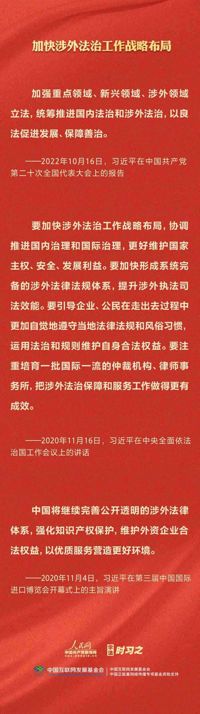 今年是貫徹落實黨的二十大精神的開局之年。中共中央政治局決定從今年4月開始,在全黨自上而下開展學習貫徹習近平新時代中國特色社會主義思想主題教育。習近平法治思想是習近平新時代中國特色社會主義思想的重要組成部分,人民網(wǎng)·中國共產(chǎn)黨新聞網(wǎng)推出學法時習之·學習習近平法治思想系列策劃,本篇聚焦“堅持統(tǒng)籌推進國內(nèi)法治和涉外法治”。
