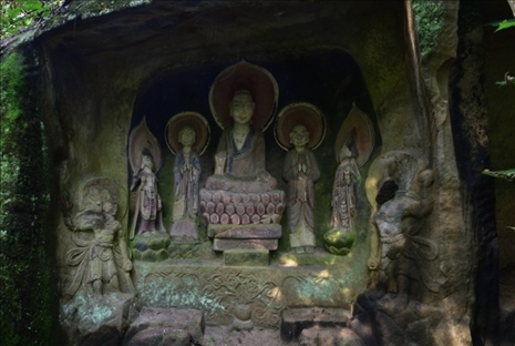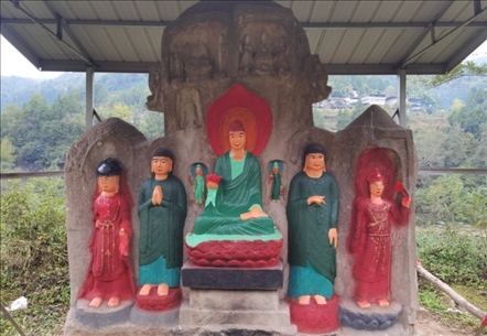 此外在四川廣安、資陽、內(nèi)江等地也存在類似情況。位于廣安市經(jīng)開區(qū)的金鳳山摩崖造像,開鑿于宋代,1994年當?shù)厝罕娮阅假Y金對造像的殘缺部位進行了修補,并涂上紅、藍、青三色油漆。位于內(nèi)江市資中縣的羅漢洞,建于宋代,1998年,當?shù)厝罕娮曰I資金對羅漢洞內(nèi)“拈花微笑佛”進行裝彩重繪,目前,其余造像無妝彩重塑現(xiàn)象。此外,核查中還發(fā)現(xiàn)四川資陽市雁江區(qū)的半月山摩崖造像,佛足部分有人為刻畫痕跡。