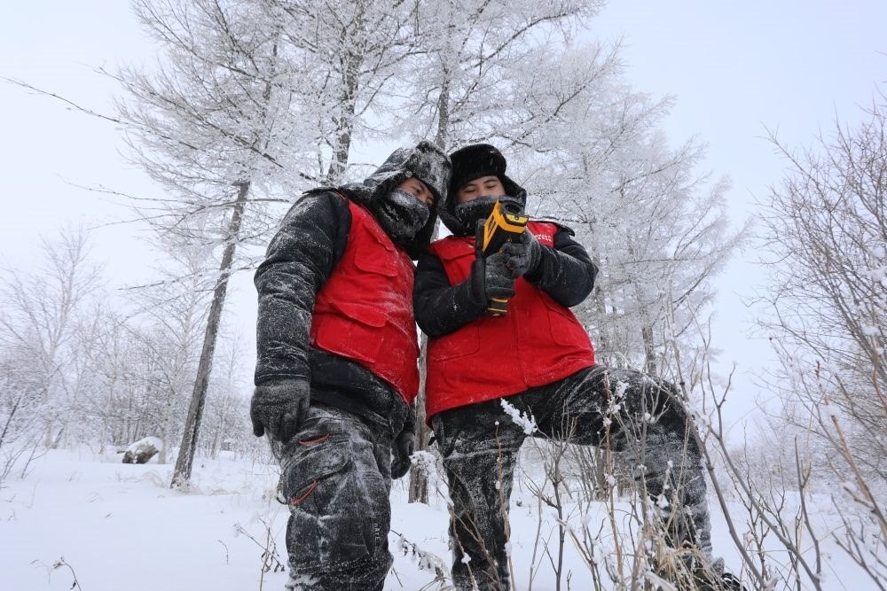 降雪后國(guó)網(wǎng)興安供電公司職工正在測(cè)溫,監(jiān)測(cè)負(fù)荷變化。柏松 攝