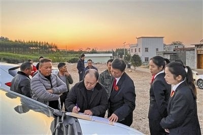 考慮到目前農(nóng)村建房施工矛盾糾紛普遍發(fā)生,為達(dá)到“審理一案,教育一片”的普法效果,近日,廣西壯族自治區(qū)象州縣人民法院石龍人民法庭干警來到象州縣馬坪鎮(zhèn)新圩村,巡回審理一起農(nóng)村建房施工合同糾紛案,并邀請當(dāng)?shù)卮迕衽月犕彙?/p>