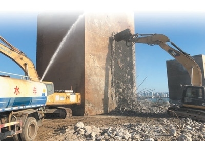 拆除工程剛啟動,便遇施工遲緩。市里隨即召集施工單位負責人,督促加緊施工。施工方也有難處,整個拆除工程總量超過600萬立方米,相當于在海面挖出2400多個標準游泳池。一些參加拆除工程的工作人員表示:“從沒干過這么大體量的海上拆除作業(yè),僅勘察測算、設備調(diào)度就很費周折?!?/p>