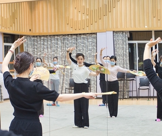 一些年輕人在夜校學(xué)習(xí)淮劇團(tuán)團(tuán)扇課程。上海市群眾藝術(shù)館供圖
