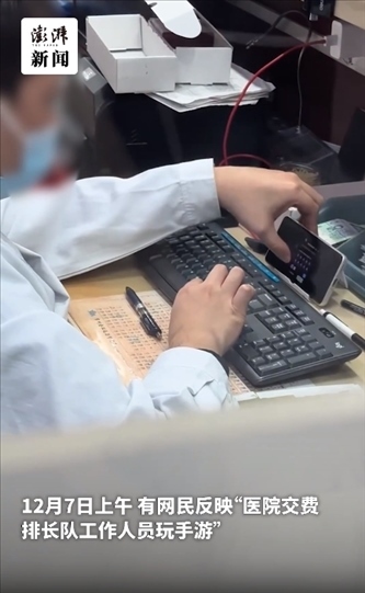 ·上海華山醫(yī)院收費窗口員工上班時玩手游?院方稱已暫停其工作。