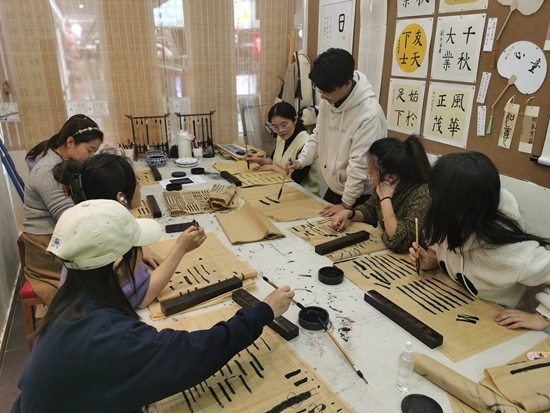 近日,陜西西安,一群年輕人在“城市緩沖區(qū)”夜校開設(shè)的書法課上學(xué)習(xí)。受訪者供圖