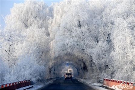 2023年12月25日,沈陽(yáng),渾河兩岸現(xiàn)霧凇景觀,銀裝素裹,美若仙境。