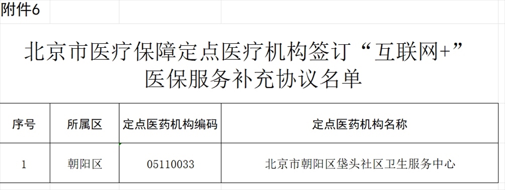 北京市朝陽區(qū)垡頭社區(qū)衛(wèi)生服務(wù)中心申請開展“互聯(lián)網(wǎng)+”醫(yī)保服務(wù),經(jīng)市、區(qū)醫(yī)保經(jīng)辦機(jī)構(gòu)審核并通過信息系統(tǒng)業(yè)務(wù)驗收,該定點醫(yī)療機(jī)構(gòu)符合“互聯(lián)網(wǎng)+”醫(yī)保服務(wù)條件,簽訂《<北京市基本醫(yī)療保險定點醫(yī)療機(jī)構(gòu)服務(wù)協(xié)議書>“互聯(lián)網(wǎng)+”醫(yī)保服務(wù)補(bǔ)充協(xié)議》,為參保人員提供北京市醫(yī)療保障“互聯(lián)網(wǎng)+”醫(yī)保服務(wù)(見附件6)。