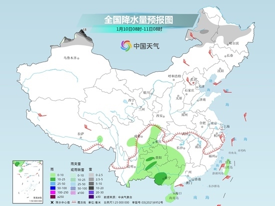 今天南方陰雨天氣持續(xù),明天降雨區(qū)域?qū)⒖s減到西南一帶,北方則多晴朗干燥天氣,新疆北部仍需警惕強降雪。