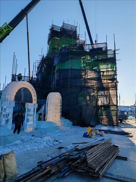 為迎接2025年1月在哈爾濱舉行的亞冬會,今年冰雪大世界的規(guī)模是有史以來最大的一次。工程浩大,對冰雕、冰燈的制作要求也就更嚴格,現(xiàn)場請了許多相關的建筑公司來監(jiān)理、把關施工質(zhì)量。