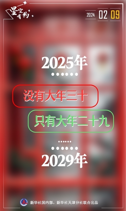 新華社天津1月13日電(記者周潤?。┙找粍t“未來5年都沒有大年三十”的消息引發(fā)公眾關注。消息稱,2024年2月9日是近年來最后一個大年三十,因為從2025年起至2029年都沒有大年三十,只有大年二十九。天文科普專家表示,大年三十時有時無是正常歷法現象,系農歷大小月所致。