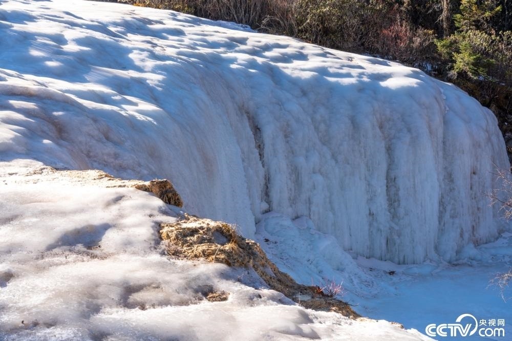 四川阿壩,黃龍風景區(qū)現(xiàn)冰瀑景觀。
