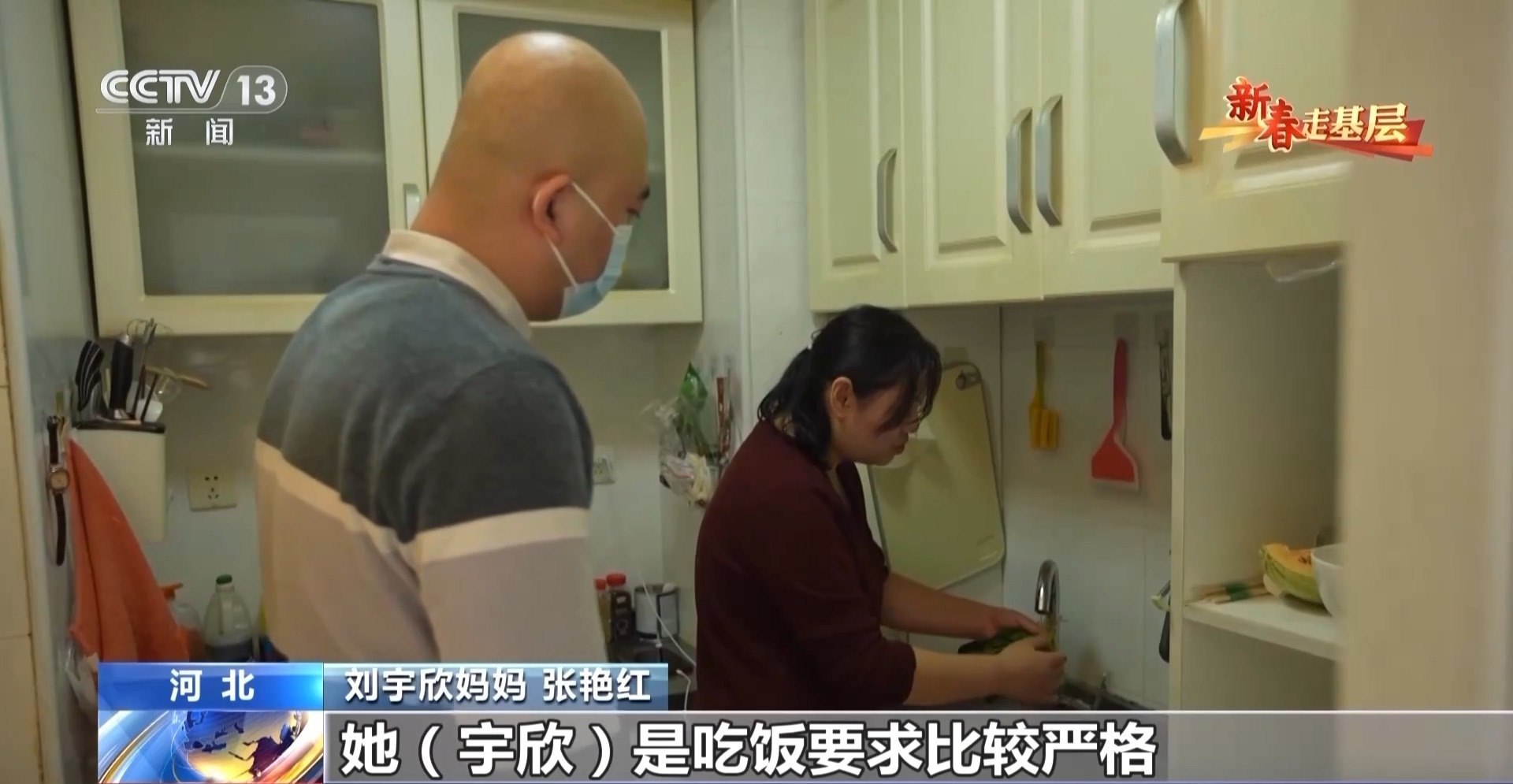 劉宇欣媽媽 張艷紅:宇欣吃飯要求比較嚴(yán)格,洗菜的時候要洗得特別干凈。一般都得洗個三遍以上才能干凈,因為有一點細(xì)菌都不行。感覺時間特別緊,她吃完上頓你要準(zhǔn)備下頓的。