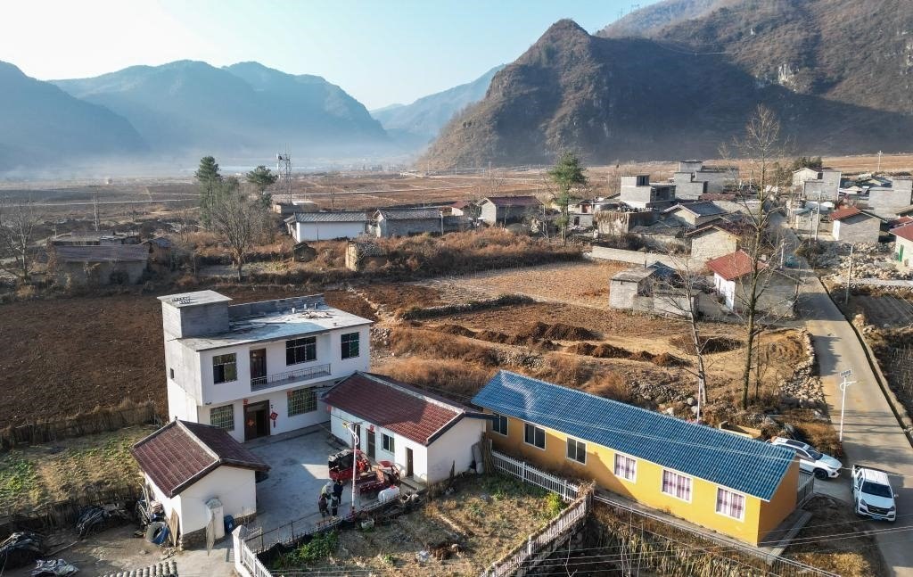 這是巴木玉布木位于越西縣板橋鎮(zhèn)桃園村的家(2月2日攝,無人機(jī)照片)。新華社記者 王曦 攝