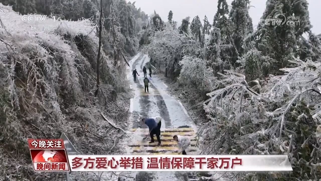 受寒潮影響,近期在江西德安高海拔的塘山鄉(xiāng),唯一一條上下山的主干道嚴(yán)重結(jié)冰,當(dāng)?shù)馗刹咳罕娚仙狡票?,讓返鄉(xiāng)過年的村民順利回家;在合肥,為了城市軌道交通正常運行,工人們連夜對覆冰的接觸網(wǎng)除冰作業(yè)。