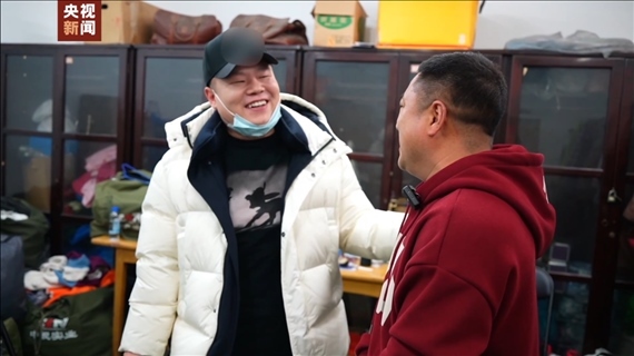 ·“餅干小哥”圓夢春晚彩排后臺,將自己定制的糕點送給岳云鵬。