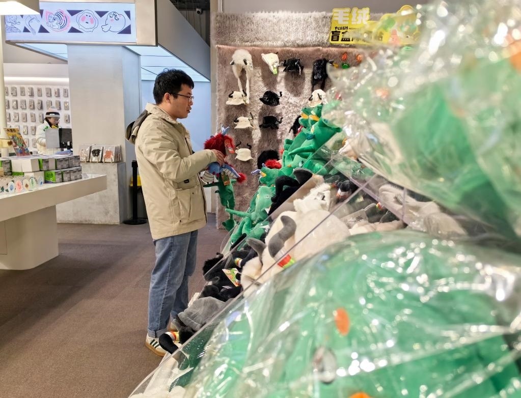 2月2日,游客在甘肅省博物館文創(chuàng)商店挑選文創(chuàng)產(chǎn)品。新華社記者 何問(wèn) 攝