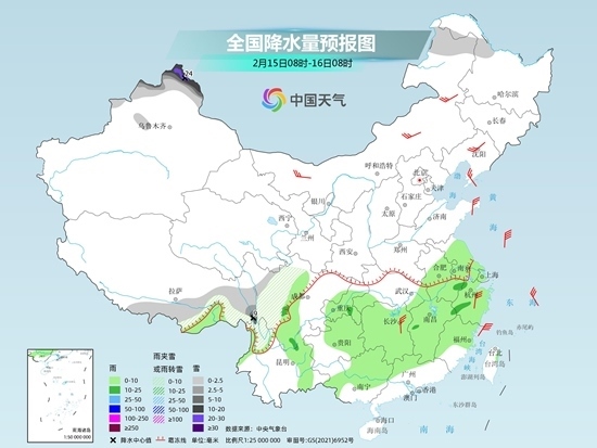 后天,內蒙古東北部、黑龍江西北部、新疆北部、西藏南部和東部、川西高原、云南西北部等地部分地區(qū)有小到中雪或雨夾雪,其中,新疆北部、云南西北部等地部分地區(qū)有大到暴雪,局地有大暴雪。江淮大部、江南、西南地區(qū)東部、云南東部、華南北部和西部等地部分地區(qū)有小到中雨。