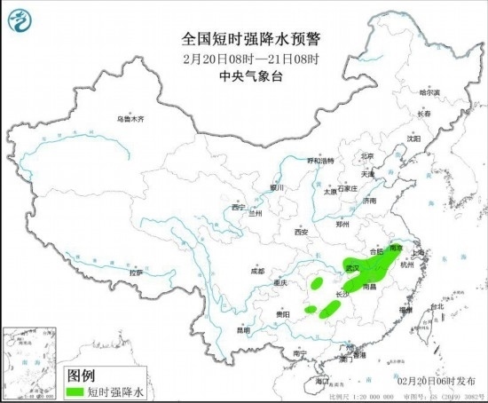 中央氣象臺(tái)2月20日6時(shí)繼續(xù)發(fā)布強(qiáng)對(duì)流天氣藍(lán)色預(yù)警: