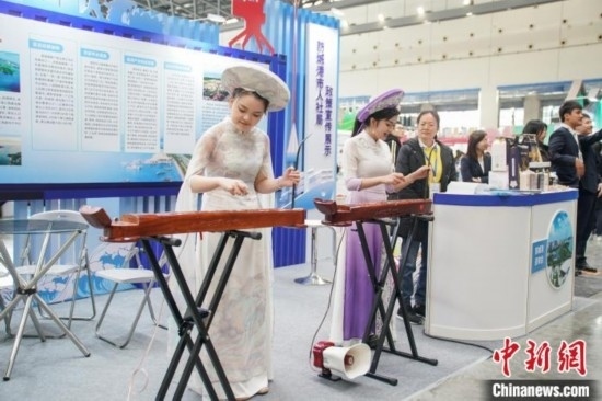 3月2日,廣西2024年春季人才交流大會在南寧國際會展中心舉行。圖為表演者在廣西防城港市招聘專區(qū)彈奏京族獨弦琴。陳冠言 攝