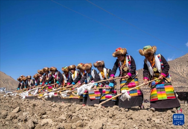 3月16日是西藏農(nóng)民舉行一年一度春耕大典的日子。村民沿襲著傳承千年的春耕民俗,身著節(jié)日盛裝,播撒種子,平整田地。