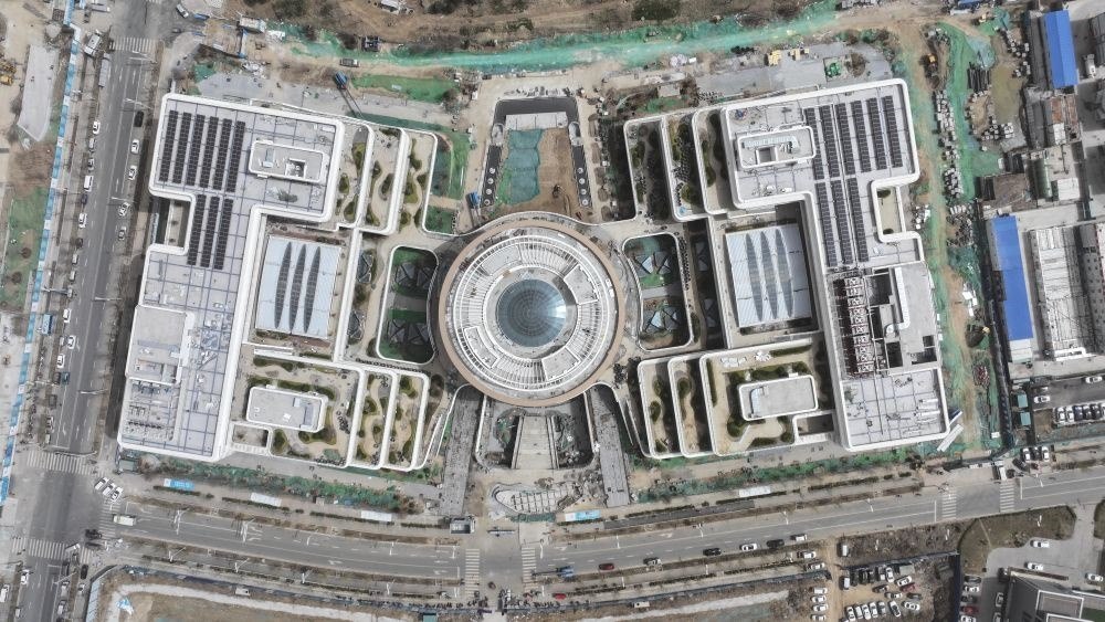 ↑這是位于雄安新區(qū)啟動區(qū)內(nèi)的中國衛(wèi)星網(wǎng)絡集團有限公司總部大樓建設現(xiàn)場(3月28日攝,無人機照片)。