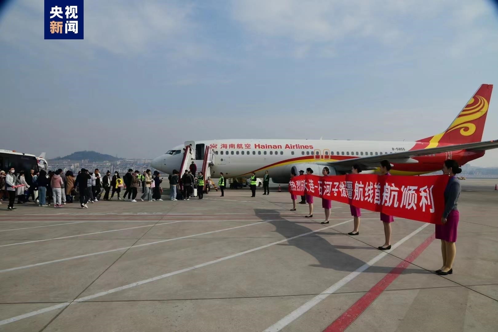 該航線由海南航空波音737-800機(jī)型執(zhí)飛,每周3班。新航線的開通是繼宜昌之后,大連機(jī)場(chǎng)開通的第二條對(duì)口支援航線。(總臺(tái)記者 賈鐵生)