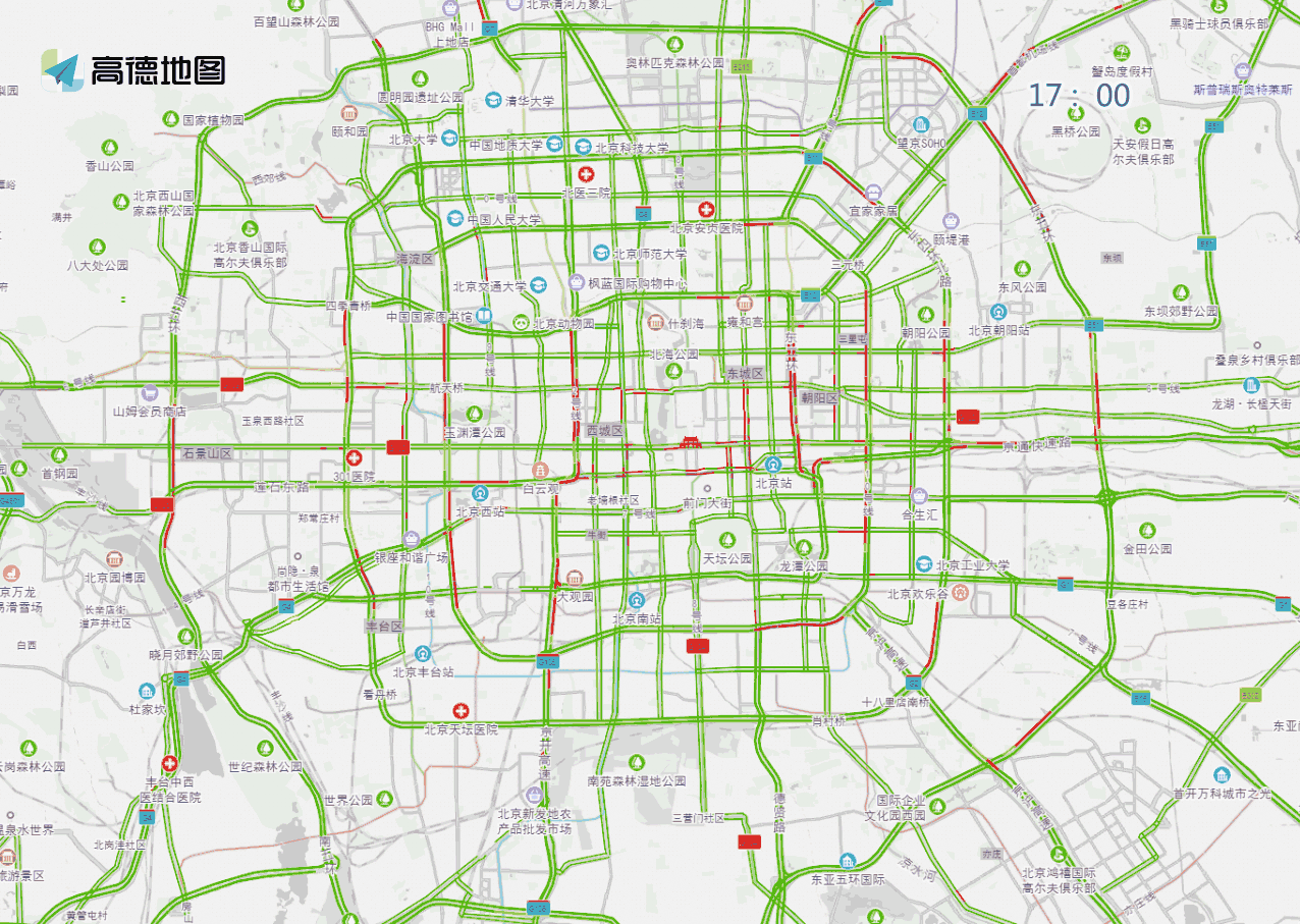 工作日早間至白天時段,預(yù)計兒童醫(yī)院、兒研所、北京醫(yī)院、西苑醫(yī)院、復(fù)興醫(yī)院、北醫(yī)三院、同仁醫(yī)院、積水潭醫(yī)院等醫(yī)院門前及周邊道路車流量較大,高峰時段為7至13時。