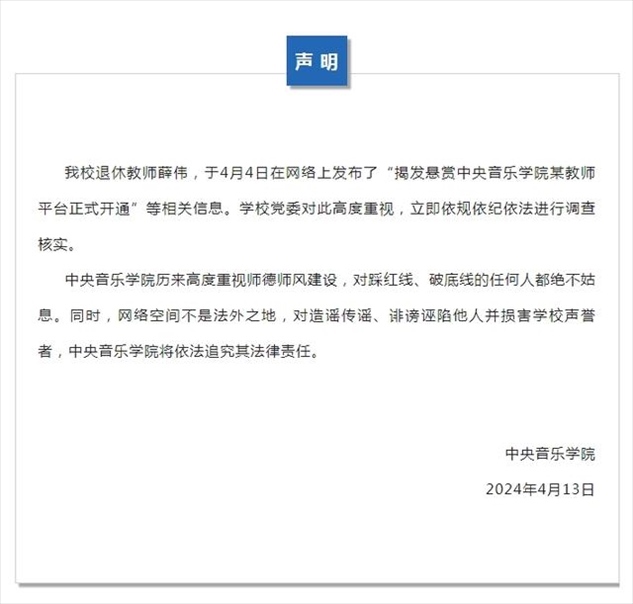 ·中央音樂(lè)學(xué)院回應(yīng)學(xué)校系主任被舉報(bào):立即調(diào)查,絕不姑息。