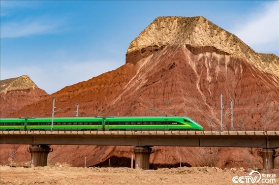 動(dòng)車(chē)組列車(chē)疾馳在蘭新高鐵上,與錦繡山河構(gòu)成了一幅幅優(yōu)美的動(dòng)態(tài)畫(huà)卷。