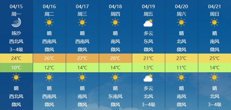 根據(jù)氣象部門預(yù)報,本周天氣以晴和多云為主,氣溫總體回升,周四白天最高氣溫預(yù)計將達到28℃。天氣條件總體適宜出行,晝夜溫差仍較大,還需注意適時增減衣物,謹(jǐn)防感冒。
