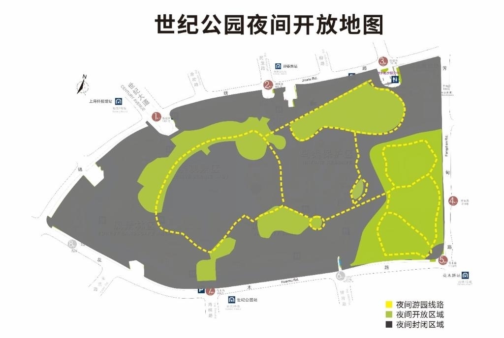 世紀(jì)公園5月1日擬實(shí)行24小時(shí)開(kāi)放的區(qū)域示意圖。(園方供圖)