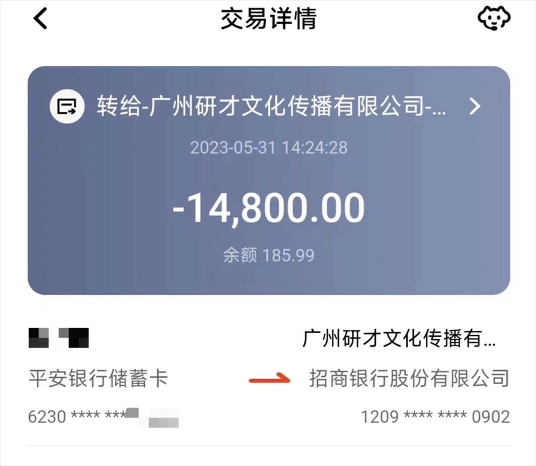 2023年5月31日,陳鑫支付14800元學費,報名了該機構(gòu)的“院校推免保送研究生課程”,對方發(fā)送的信息顯示,陳鑫報的班級為“名校渠道預(yù)錄班”。