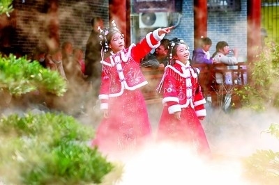 夜幕降臨后,襄陽古城迎來了一天最具魅力的時刻。漫步在店鋪林立、游人如織的北街上,遠處巍峨聳立的昭明臺燈火輝煌,全長1200多米的寬闊街道上,一座座石牌坊坐落其間,兩側(cè)雅致的青磚馬頭墻、明艷的朱紅立柱、優(yōu)美的墀頭朱雀,展示著古老而又時尚的文化韻味。在北街循著巷子?xùn)|行,便來到了新近開放的管家巷歷史文化商業(yè)街區(qū)。在襄音廣場,隨著音樂聲響起,年輕的演員們與游客共同跳起歡快的舞蹈。管家巷文化休閑街區(qū)運營負(fù)責(zé)人劉洋介紹:“《詩畫襄陽》《俠義襄陽》《舞墨襄陽》等10部極具襄陽韻味的特色劇目,在管家巷全程免費開放,劉備、諸葛亮、李白、杜甫、孟浩然等30多位歷史名人的扮演者,走街串巷、演藝互動,游客仿佛穿越至千年前的襄陽?!?/p>