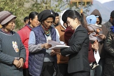 圖①:法院干警剛到彝寨,彝族同胞便聚集過來。