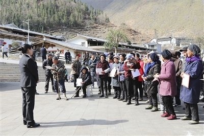 陽春三月,萬物復蘇。繁花盛開,如詩如畫。四川省石棉縣人民法院美羅女子法庭來到安順場鎮(zhèn)新場村彝寨,開展“雙語”普法活動。