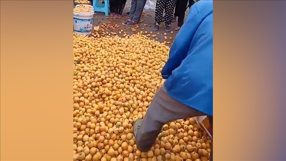 5月8日,有網(wǎng)友發(fā)視頻稱重慶枇杷滯銷,村民忍痛將千余斤成熟枇杷踩碎。視頻中,有果農(nóng)將整背簍的枇杷直接倒在地上,畫外音稱:“枇杷賣不脫(出去),你看嘛,一背(簍)一背(簍)就像這樣倒了?!绷硪欢我曨l顯示,有果農(nóng)一邊往地上倒枇杷,一邊用腳踩踏枇杷。還有人大喊:“不要了,不要了”。