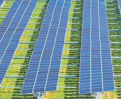 億利立體生態(tài)光伏項目區(qū),光伏面板下長出牧草。